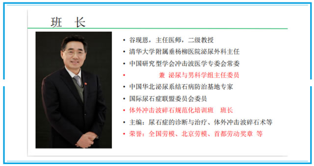 谷现恩教授对本次培训的成功寄予厚望,他说,本次培训把全国的碎石专家组织到一起,讨论各类话题,非常不容易!感谢各位老师的辛苦付出,鼓励大家今后对体外碎石有任何的问题和建议,都可以随时交流。